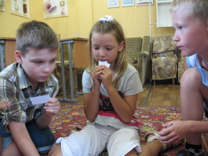 Занятия проводятся в виде ролевых игр и театральных постановок. Дети проигрывают запоминаемую информацию, а также рисуют, слушают сказки и сами придумывают их.